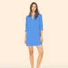 Short and Sweet. Carlotta is new this season in our washed double faced cotton gauze for a soft, gently crinkled feel. Carlotta is a flowy mini dress with a V-neck, partial button-front with coconut buttons, bell sleeves, and a faux suede waist-tie.